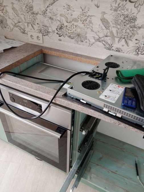* подключить варочную поверхность, духовой шкаф,электроплиту.