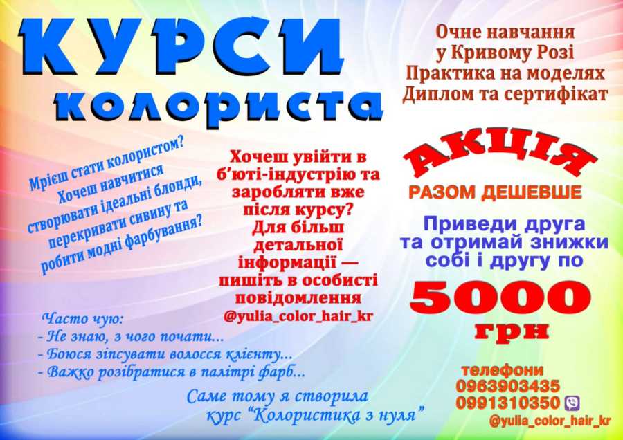 Курси колориста диплом і сертифікат Кривой Рог